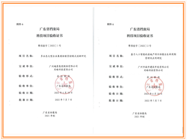 近日,集团总部《多业态大型企业集团档案管控模式创新研究》项目和完美真人地产《基于人工智能的房地产项目档案全生命周期管理及应用研究》项目通过省档案科技项目验收,两个项目获得专家组充分肯定,成为省档案局科技项目管理办法修订后首批通过科技验收的项目。